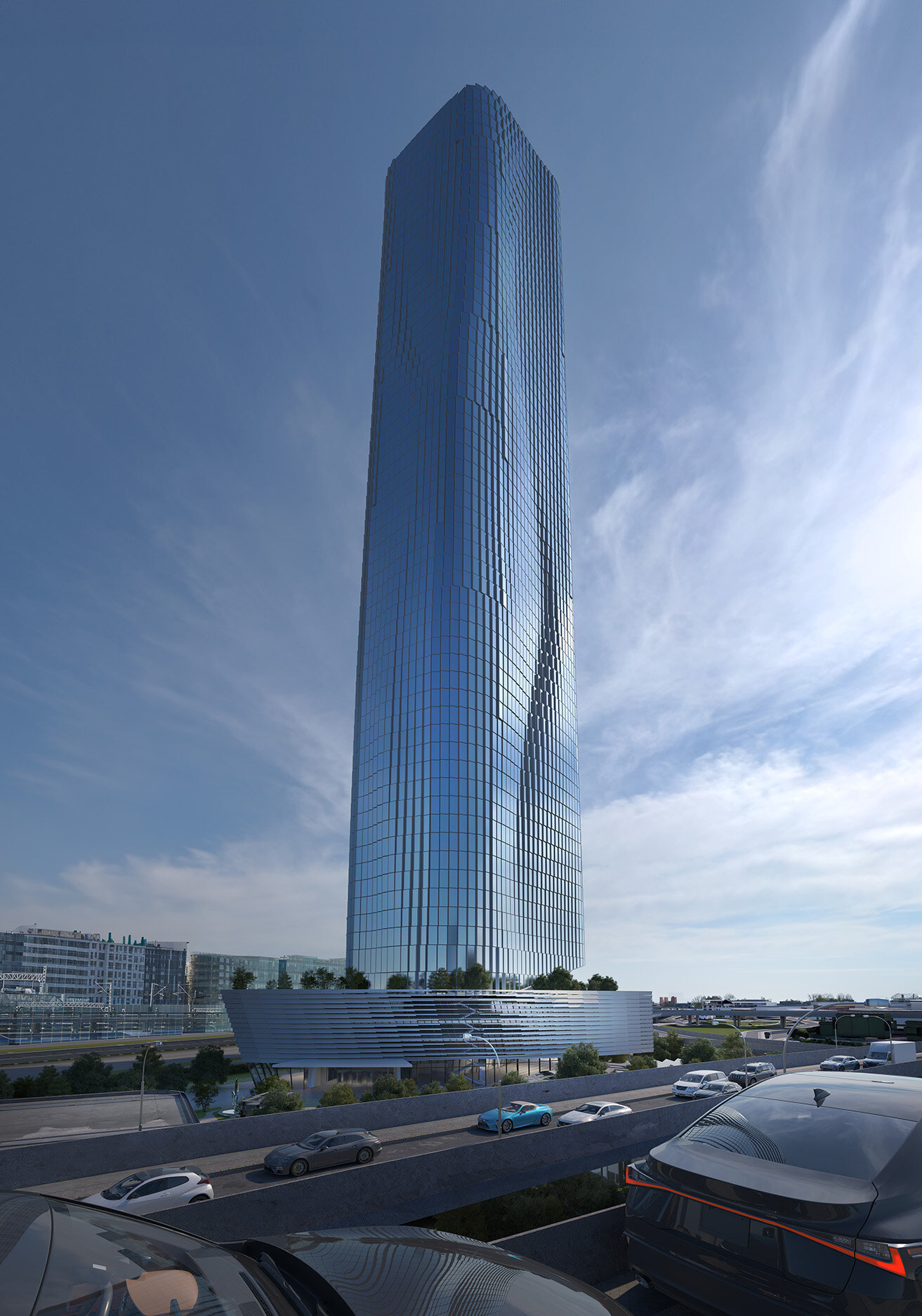 At around 300 meters high, the project study of an iconic tower’s sculpted shape gives it a striking profile visible from all the city center’s important reference points, as well as from the river. The City Tower’s location in the heart of the international business center has the potential to add a new landmark to the skyline that will be visible from far away.