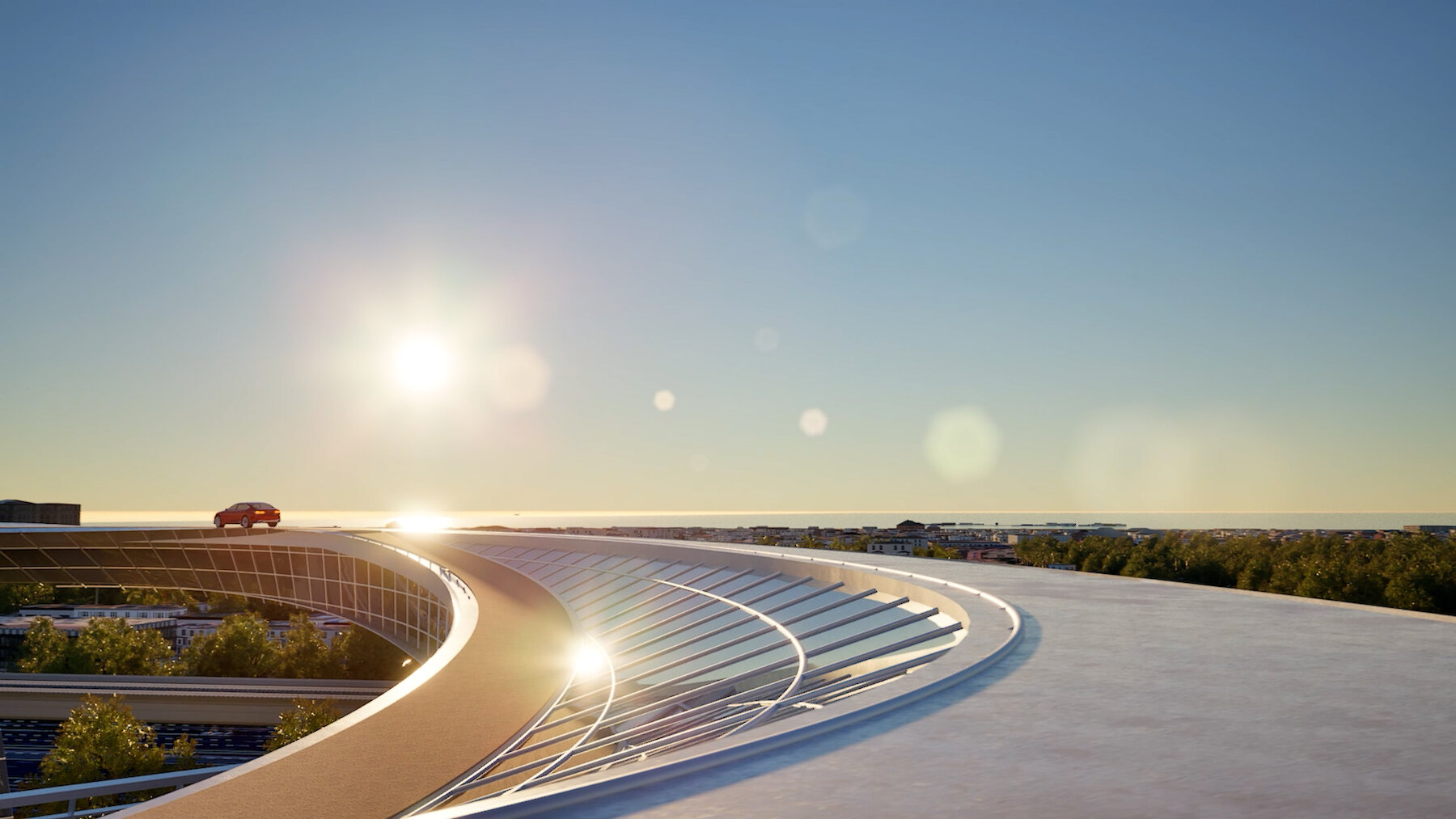 The Loop Off-Road Ring unifies the entire development architecturally. The internal area functions as a dedicated exhibition and event venue for Toyota, and the external rooftop section features an elevated off-road test track, offering a unique driving experience high above Dubai’s skyline.